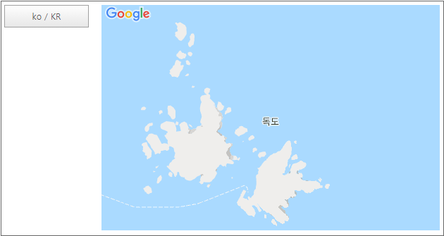 GoogleMap 컴포넌트의 표시 언어와 지역적인 특성을 설정할 수 있습니다. 한국 영토인 독도 같은 경우 지역 특성 설정에 따라 다르게 표시됩니다.