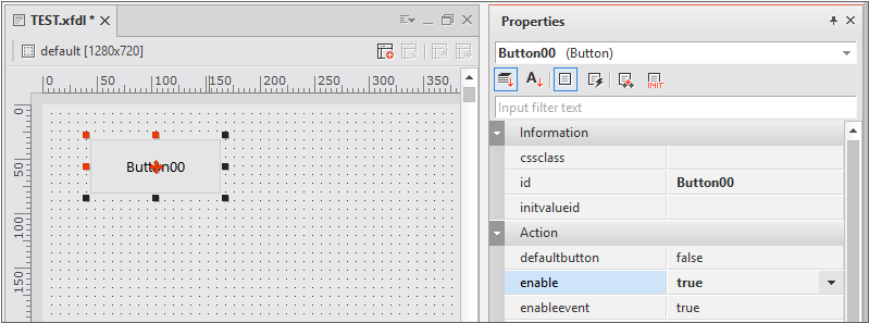 텍스트 입력 후 다른 속성 항목으로 이동하거나 디자인 화면으로 포커스를 옮기면 Button 컴포넌트의 텍스트가 변경된 것을 확인할 수 있습니다.