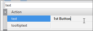속성창에서 Button 컴포넌트의 text 속성값 변경하기