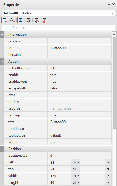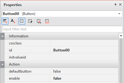 컴포넌트의 기본값을 수정한 경우에는 굵은 글꼴로 속성값이 표시됩니다. 디자인 화면에 처음 배치된 상태에서 id, text, left, top, width, height 속성값이 굵은 글꼴로 표시되는 것은 컴포넌트를 배치하는 과정에서 id, text 속성값이 지정되고 Position 관련 속성값이 배치된 위치에 따라 지정되기 때문에 굵은 글꼴로 속성값이 표시됩니다.