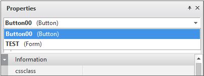 디자인 화면에서 컴포넌트를 선택하지 않더라도 [Project Explorer]에서 해당 컴포넌트를 선택하거나 속성창 목록에서 원하는 컴포넌트를 선택할 수 있습니다.
