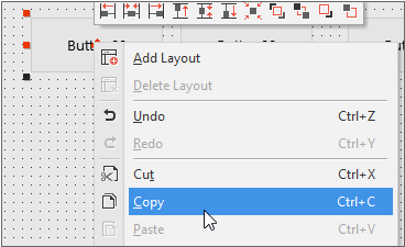 컴포넌트를 선택하고 Ctrl+C 키를 입력하거나 왼쪽 마우스를 클릭해 표시되는 메뉴에서 [Copy] 항목을 선택합니다. 선택한 컴포넌트가 클립보드에 복사됩니다.