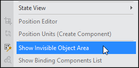 [Invisible Object] 영역이 보이지 않는다면 메뉴[Design > Show Invisible Object Area] 항목을 선택합니다.