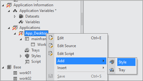 Add | 新しいStyle、Tray項目を作成します。 |