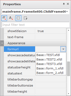 FormファイルはChildFrameの「formurl」プロパティにリンクしてnexacro platformの実行時Formの画面を表示することができます。