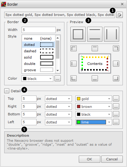 4 | Detail | 下位Borderプロパティ値を設定します。 該当項目は、展開するか折り畳むことができます。 |
