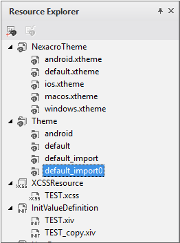 プロジェクトに含まれたリソースファイルを表示し、さらに作成したり、既存に作成したファイルをインポートすることができます。