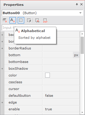 選択されたオブジェクトのアトリビュートやイベントをタイトル順に並べて編集するAlphabet Sort画面です。