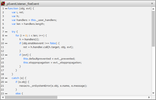 nexacro studioで提供されるデバッグ機能は、NREで実行された場合にのみ動作します。実行環境がWebブラウザである場合には、Webブラウザで提供するデバッグ機能を使用する必要があります。