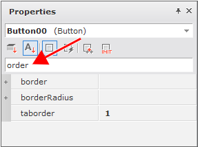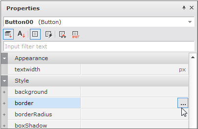 borderプロパティを持つコンポーネントはBorder Editorを使用して、下位項目を編集することができます。プロパティウィンドウで、border項目の右側にあるボタンをクリックします。