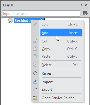 Easy UIパネルでModelタブを選択し、コンテキストメニューからImportを選択します。
