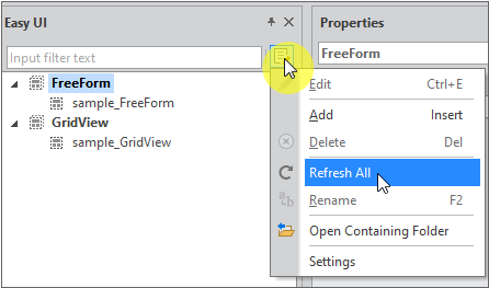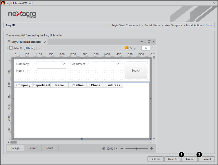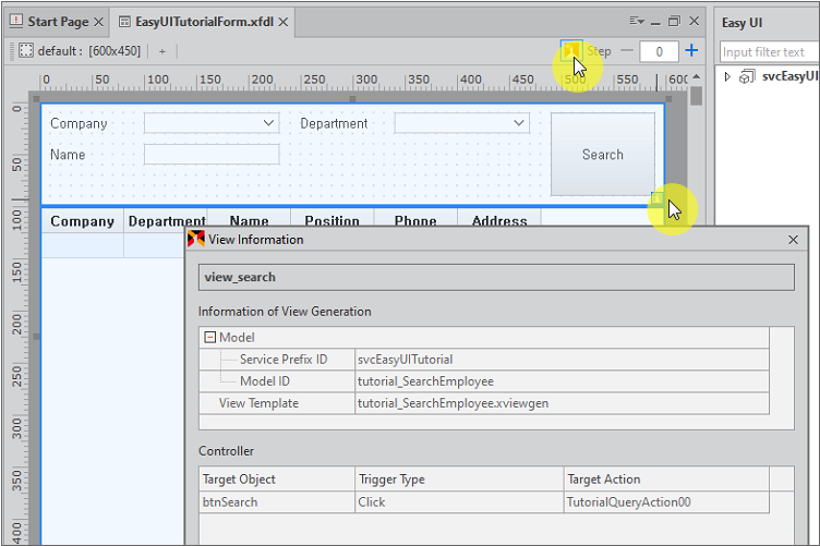 プロジェクト作成時に[Use 'Easy UI' > Start Tutorial]を選択したか、プロジェクトを開いた状態でメニュー[Easy UI > Let's Try Easy UI]を選択した場合、Easy UI Tutorial Wizardを実行します。