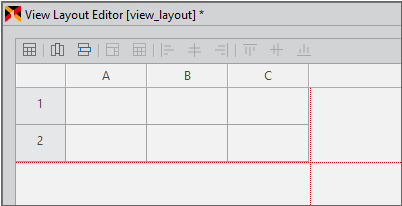 Column、RowのサイズはViewコンポーネントの全体を埋めるように自動生成されます。各Column、Rowのサイズはプロパティウィンドウより変更することができます。赤い点線で表示された枠線はViewコンポーネントのサイズを表示します。