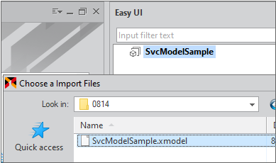 model Typeサービスを追加してxmodelファイルをインポートします。