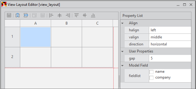 View Layout Editorでセルを選択し、セルのプロパティを設定することができます。