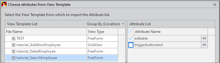 Viewテンプレートのfn_GetViewAttributeList関数内のedittypeが「Layout」である項目を設定した場合、View Generation WizardでView Attributes項目を設定する際にView Layout Editorを使用してレイアウト情報を設定することができます。