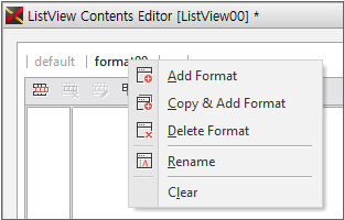 新たなFormatを追加するか、既存のFormatをコピーした後、いくつかの項目を変更することができます。ListViewでFormatを適用する場合は、formatid プロパティ値を指定して目的のFormatを選択します。