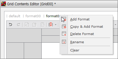 Grid Contents Editor上部のツールバーまたはマウス右クリックして表示されるメニューから必要な機能を選択することができます。