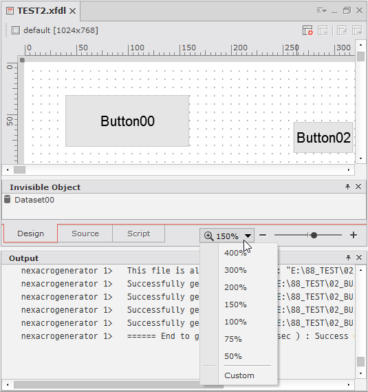 デザイン画面はタブ位置でズーム機能をサポートします。