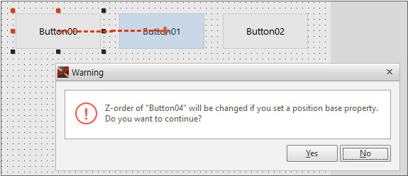 z-orderが自分より低いコンポーネントのみBaseコンポーネントに指定することができます。z-orderが自分より高いコンポーネントを指定する場合には、下記のような警告メッセージが表示されて、z-orderを変更するかどうかを確認します。