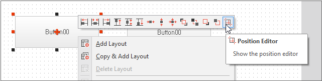 コンポーネントを選択し、マウス右クリックした後、ミニツールバーの[Position Editor]アイコンを選択するか、メニューの[Design>Position Editor]を選択して実行することができます。
