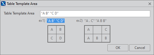 The Table Template Area window will open and display a simple example. Set the desired tabletemplatearea property value according to the set column or row. You can also copy and use the values in the example.