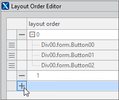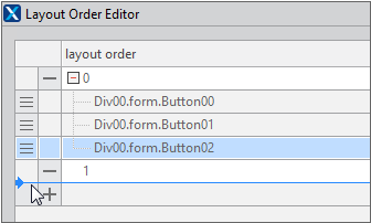 The component's layoutorder property value is used to dynamically create a component and place it in a desired location. In the Layout Order Editor, you can change the position of multiple components at once by setting components to have the same layoutorder property value and changing the layoutorder property value.