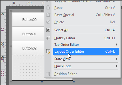 The Layout Order Editor allows you to set the layoutorder property value of components as well as the layout order of components.