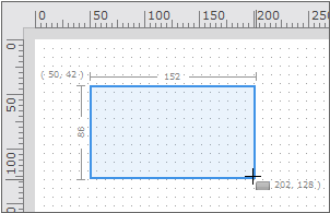 フォームデザインの何もないところでマウスをドラッグすると、Rubber Bandが四角形に表示され、四角形のスタートポインタの位置と最後のポインタの位置及び幅と高さの情報を表示して、生成されるコンポーネントのサイズを調節するとき、ユーザーが予め推測できるようサポートします。