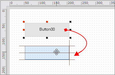 選択したコンポーネントを、キーボードの矢印キーを使って移動することができます。方向キーを入力するたびに、メニューの[Options>Form Design>Grid>Dot grid size]に指定された値だけ移動します。Ctrlキーをショートカットキーとして使用すると、最小単位(1px)だけ移動します。