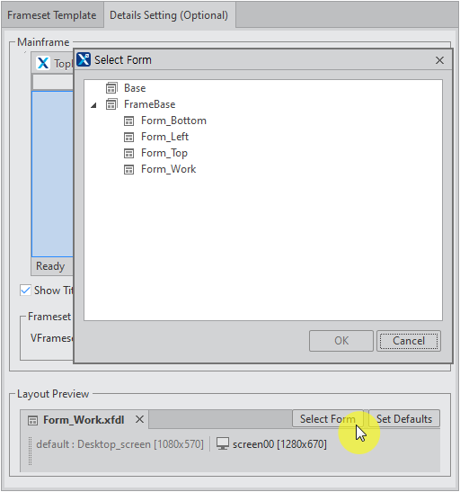1 | Select Form | Designates a Form to connect to the relevant ChildFrame |
