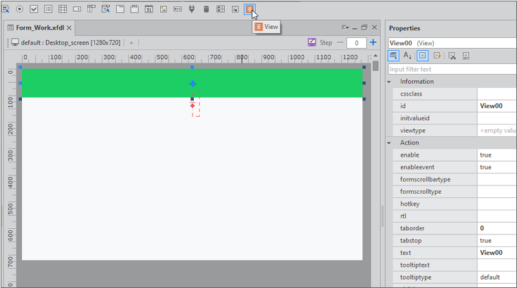 The View component cannot be placed in ContainerComponent, such as the Div component. The View component can only be registered as the child of the Form object. Even if you place the View component inside the Div component area in Nexacro Studio, it will not be included in the Div component.
