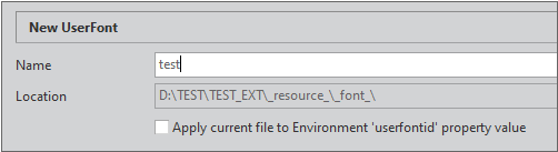 If you check the Apply current file to Environment 'userfontid' property value option, a created user font will apply to the userfontid property of the Environment object. You can change or delete the value of the property later on.