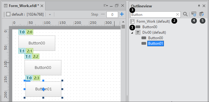 The numbers in the green boxes indicate the Z-Order of components. Z-Order defines the display order of components when the components are overlapped. A component that has a bigger number is moves to the front.