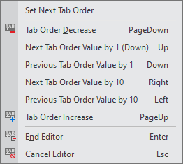 The Tab Order Edit mode supports the below context menu.