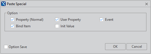 The component is pasted with only the selected Option information applied. If the "Option Save" item is checked before clicking the [OK] button, the currently selected Option information is reflected in [Option > Form Design > Paste Special].