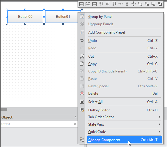 Select the component, then choose [Change Component] from the context menu. Select the component to change to in the popup window.