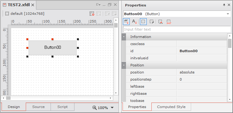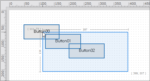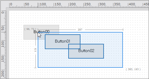 When you drag the mouse on the empty space of the Form Design window, a rectangular region will be selected. The starting and ending points, width and height of the rectangle, in pixels, will be displayed.