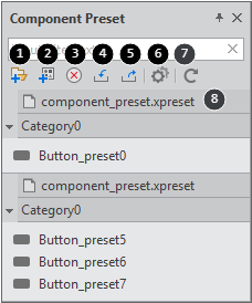 Toolbar on Component Preset Pane
