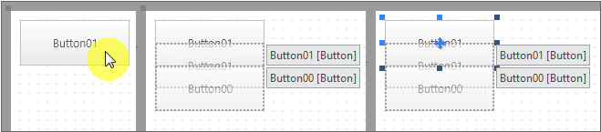 When components have the same size and position values, they are displayed overlapping. In the design screen, when the mouse pointer is moved over the overlapping components, the overlapping components are expanded, and you can select a component you want.