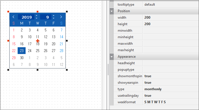 In this demonstration, a Calendar is placed on the Form with its properties set as below.
