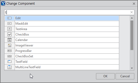 The component can be changed to another component while retaining the basic properties, including position properties, displayed on the screen. The component is changed according to its purpose without deleting and re-adding it. Multiple components of the same type can also be selected and changed at once.