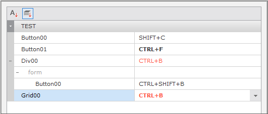 This function allows you to set hotkeys to apply to the components in a Form. To this end, you need to access the menu [Design > Hotkey Editor]. Basically, the editor presents hotkeys that have been already set. If certain components do not have hotkeys, their editable fields are empty. If you change an existing hotkey, the changed one will be displayed in bold type. If more than one component have the same key combination, the relevant hotkeys will be displayed in red.