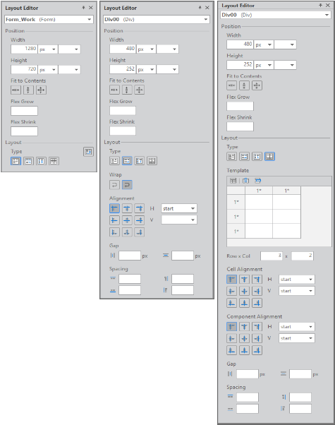 When a component is selected and copied, then pasted while another component is selected, the behavior varies as follows depending on the Layout type property.