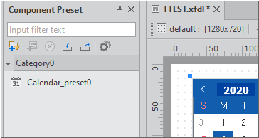 The Component Preset pane appears and the component is added as a preset in the default category.