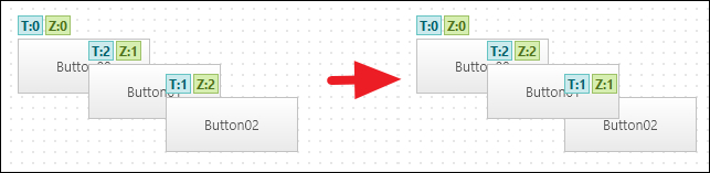 If you want to change the Z-Order according to the tab order after changing the tab order in the Tab Order Editor, you can change the Z-Order by selecting the menu [Design > Arrange to Tab Order].