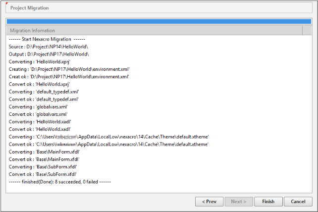 If you click the Finish button, the project will be opened in the migration mode after the wizard is closed.