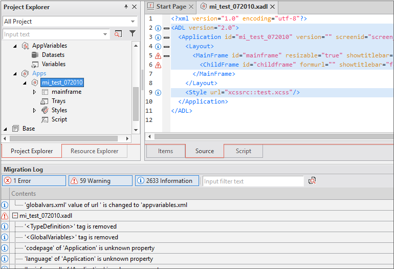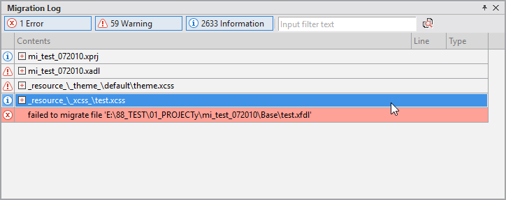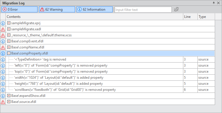 Once you perform a conversion process by using the Migration Wizard, you can open the resulting project in the migration mode. This mode allows you to review the logs of the conversion process, trace the files that have been failed to be migrated and fix the related errors. This error-fixing process is imperative as it helps you solve the problems related to the functions not provided by Nexacro or to user-written codes.