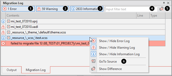4 | Migration Source View | Shows the source codes of the migrated file. Logs are presented for each line. You cannot edit the source codes. |