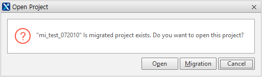 Opening a project is the beginning stage where Nexacro Studio reads your project and determines whether the project needs migration. If the project has been migrated before, you will be prompted to choose a mode for opening the project.